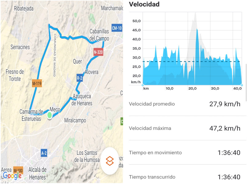 Por lo demás, una ruta cicloturista cortita que suelo hacer los días que no tengo mucho tiempo, pero que para entrenar puede ser exigente. No suele tener mucho tráfico los fines de semana (algo más en diario). Dejo aquí su resumen.